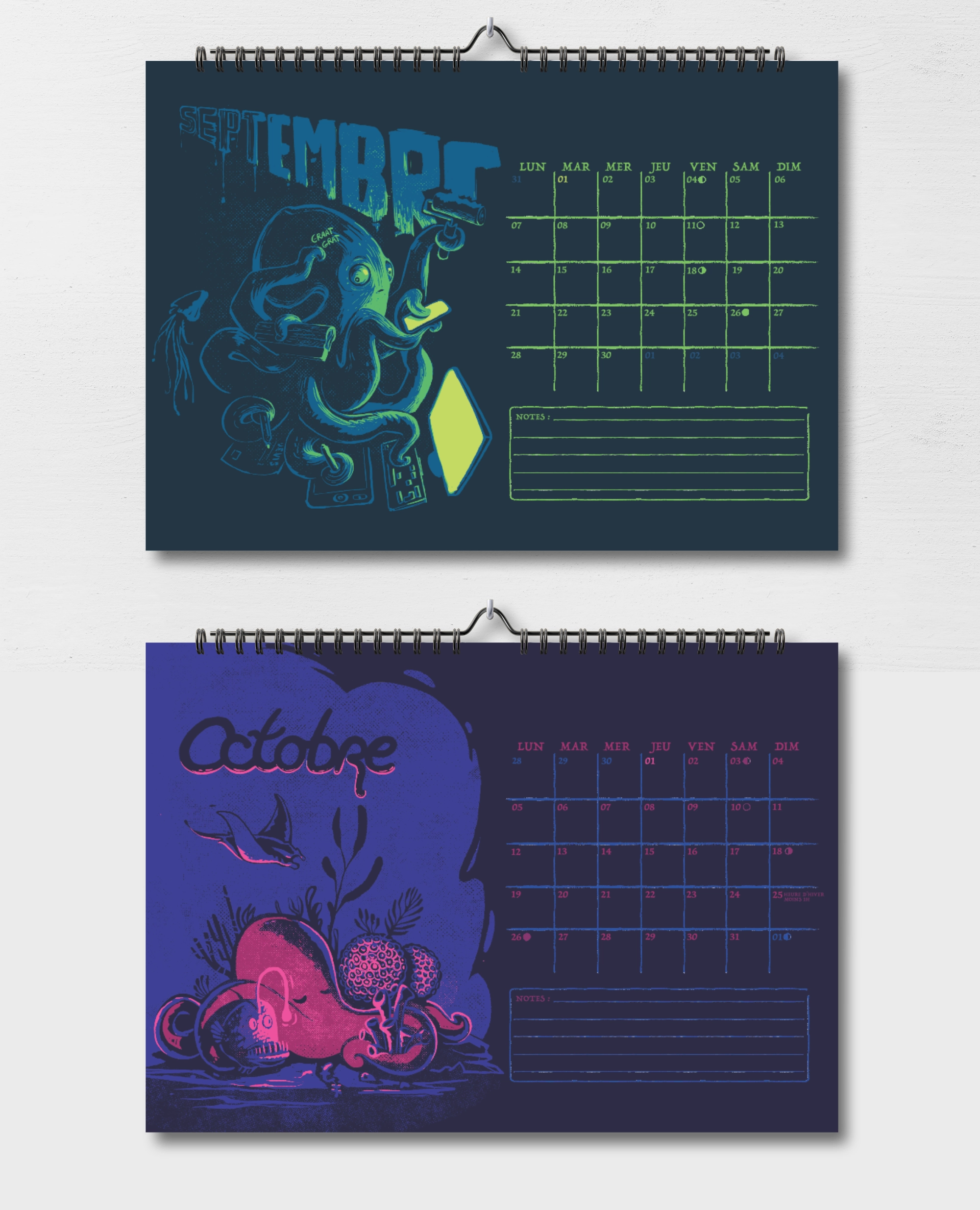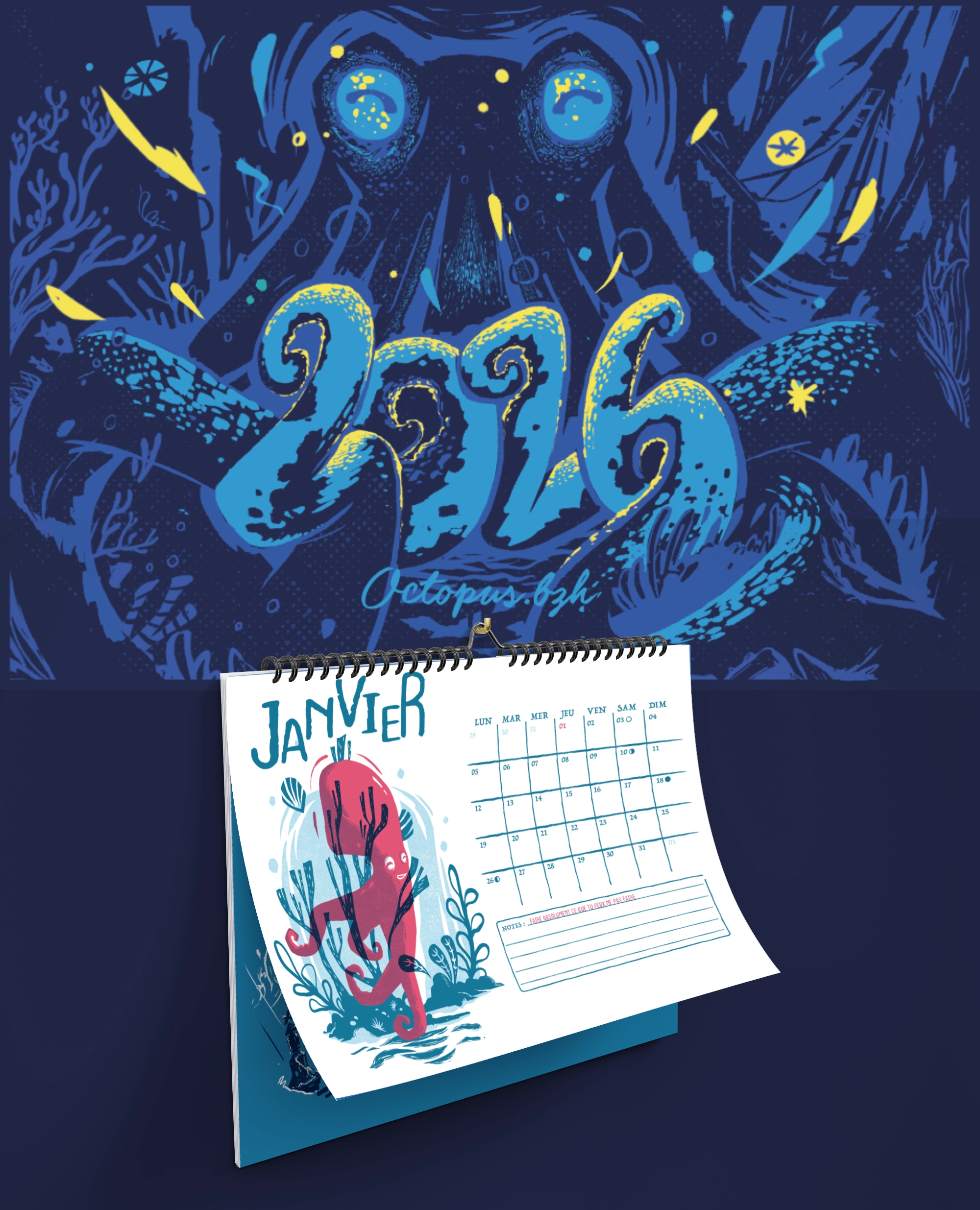 Chaque mois, découvrez une nouvelle illustration originale, dessinée à la main, où le poulpe se réinvente au rythme des saisons, des ambiances et des petits instants de l’année.
