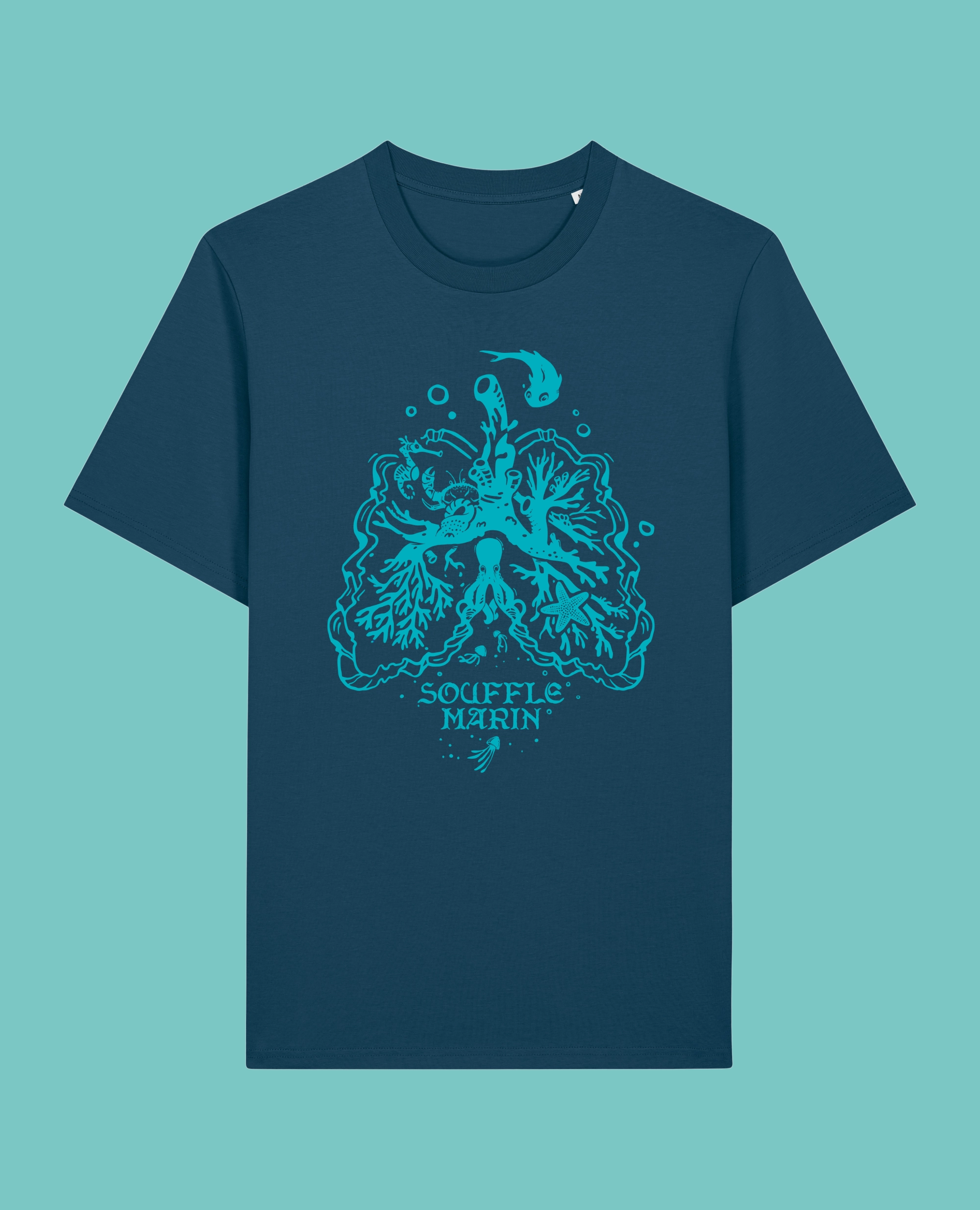 86 % de l’oxygène que nous respirons provient de la mer, soit six bouffées d’air sur sept. Ce constat a inspiré ce visuel, hommage à l’océan, véritable poumon de notre planète.